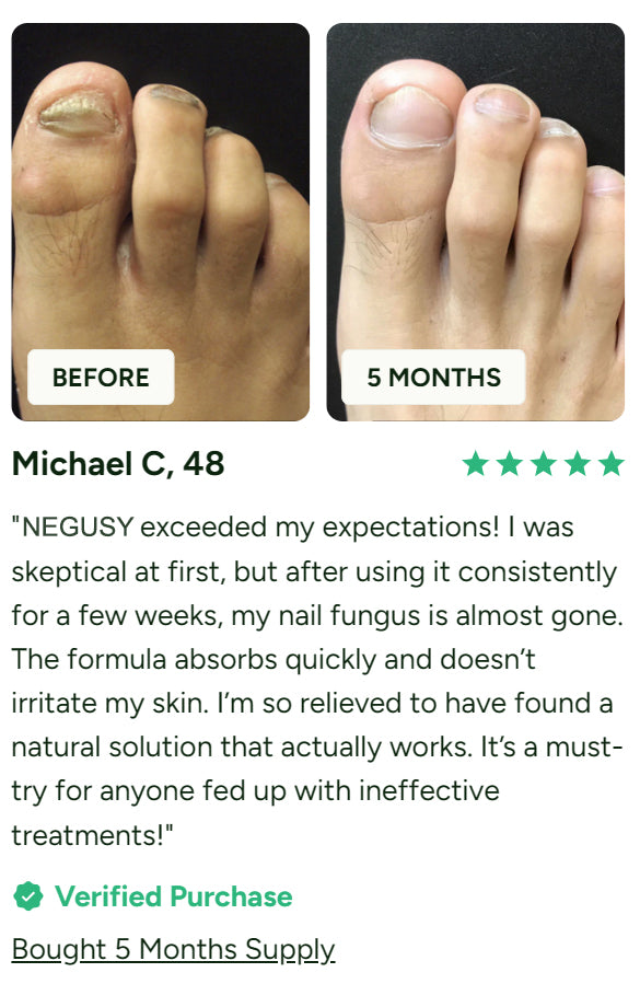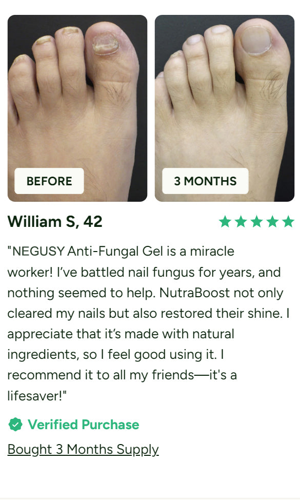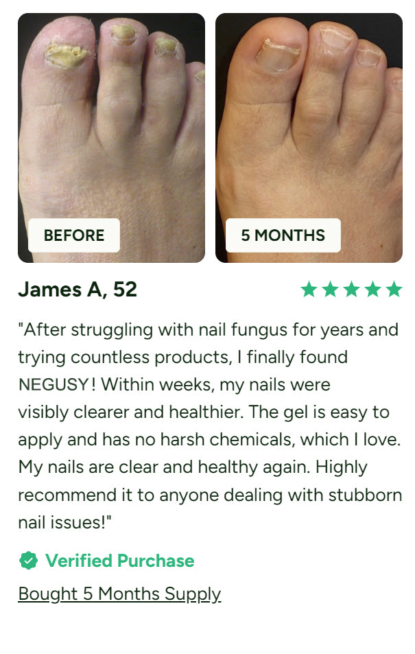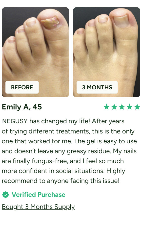 In our clinical trial, 50 men and women with various backgrounds used NEGUSY Anti-Fungal Gel daily for 120 days. Testing found that the potent formula can help eliminate fungal spores and promote healthy nail growth.