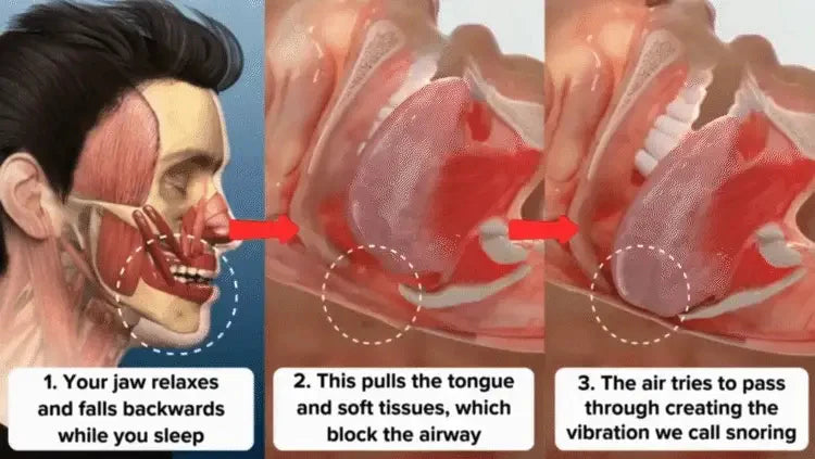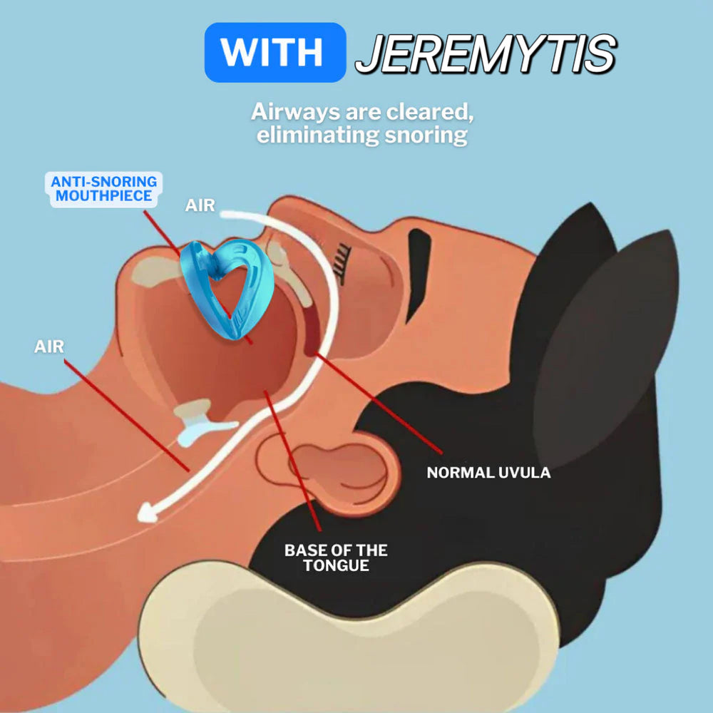 Snoring happens when the muscles in your throat relax during sleep, narrowing your airway and causing vibrations. The JEREMYTIS Anti-snoring Mouthpiece solves this naturally and effectively.